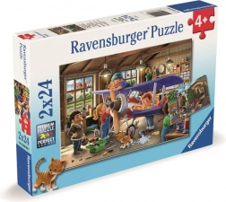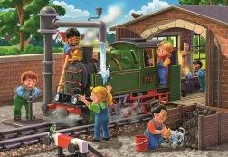 Toto dvojbalení dětských puzzle spojuje učení a zábavu v jednom. Děti si užijí skládání dvou scén plných detailů: v dílně vzniká model letadla a v depu se pečuje o parní lokomotivu. Kvalitní dílky Ravensburger perfektně zapadají, jsou odolné a přizpůsobené malým dětským rukám.