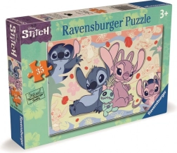 Puzzle Ravensburger Disney Stitch s 35 dílky je ideální volbou pro malé fanoušky Disney. Tento barevný obrázek zobrazuje Stitche, Angele a Scrumpa, což podporuje dětskou soustředěnost a kreativitu. Díky kvalitnímu zpracování s antireflexní úpravou je skládání příjemné.