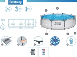 Zahradní bazén BESTWAY Steel Pro MAX je ideální volbou pro rychlé osvěžení i každodenní rodinné koupání. Robustní galvanizovaný ocelový rám odolný proti korozi a odolné stěny z materiálu DuraPlus (polyesterová síťovina vyztužená dvěma vrstvami silného PVC) garantují stabilitu a spolehlivost. Díky praktickým vypouštěcím ventilům je údržba i vypuštění vody maximálně pohodlné.