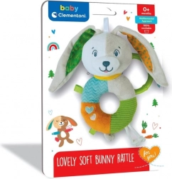Roztomilé plyšové chrastítko ve tvaru zajíčka od CLEMENTONI Baby potěší každé miminko. Je měkoučké na dotek, snadno uchopitelné a díky rolničce uvnitř rozvíjí sluchové vnímání. Různé materiály a živé barvy podporují jemnou motoriku i vizuální vnímání. Praktický uchycovací kroužek umožní vzít hračku kamkoliv s sebou.