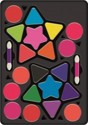 - Barevné oční stíny, třpytivé oční stíny, rtěnky, zrcátko, pěnový aplikátor (2×)