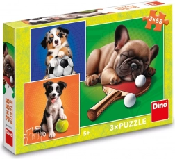 Tato sada přináší trojitou porci zábavy: tři samostatné skládanky s veselými motivy psích sportovců. Díky pevnému a bezpečnému kartonu jsou dílky příjemné na dotek a dobře do sebe zapadají, což podporuje trpělivost, logické myšlení a jemnou motoriku.