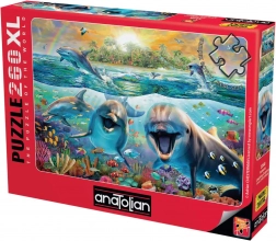 Vydejte se na podmořské dobrodružství s tímto nádherným puzzle s motivem smějících se delfínů. Ideální pro všechny věkové kategorie, přináší radost a relaxaci při skládání.
