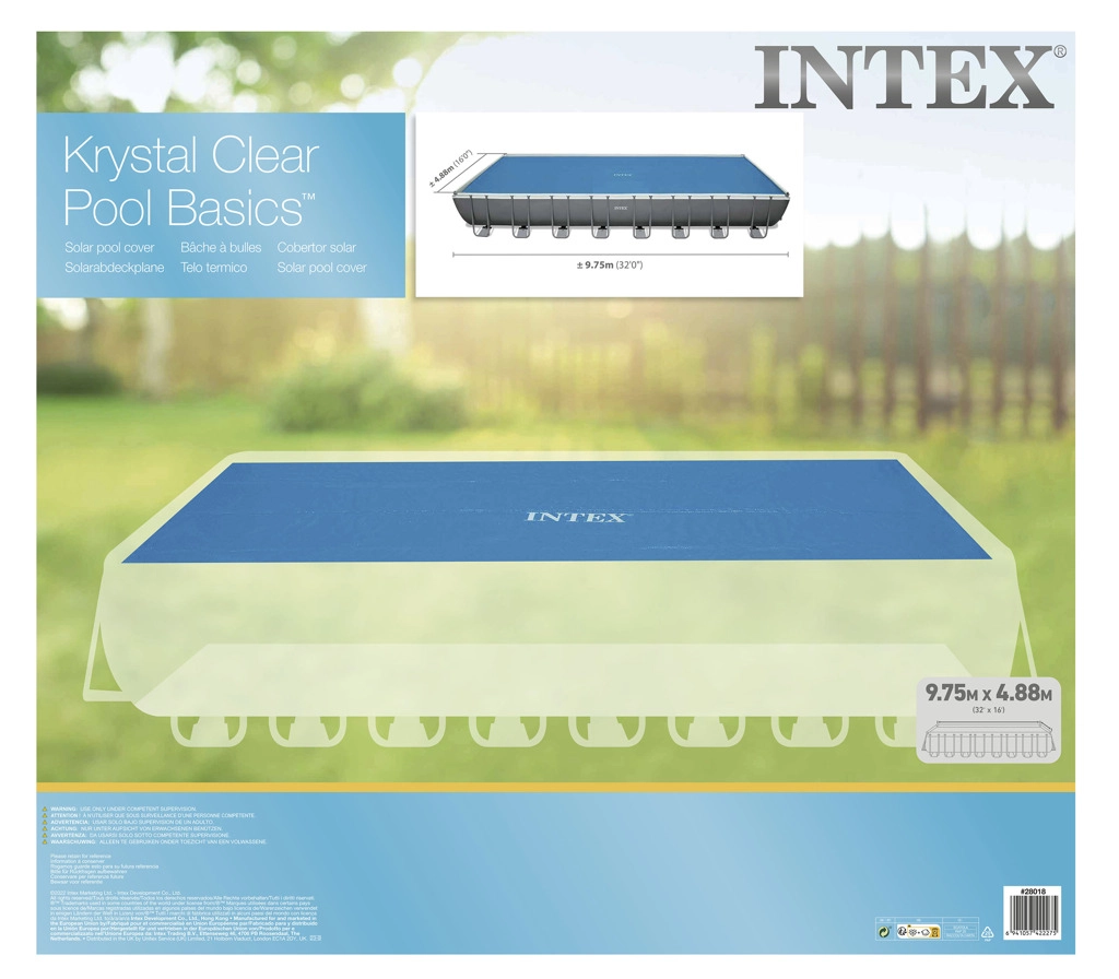 Praktická solární plachta INTEX pro obdélníkové bazény o rozměru 9,75 × 4,88 m udrží vodu déle teplou a čistou. Díky izolačním bublinkám výrazně zlepšuje ohřev vody sluncem a zároveň snižuje odpařování až o 95 %, což šetří vodu i náklady na údržbu.