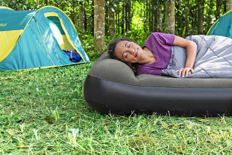 Užijte si klidný spánek kdekoli. Tato dvoulůžková matrace s rozměry 203 × 152 × 30 cm kombinuje trvanlivý PVC materiál s měkkým velurem pro maximální pohodlí. Vnitřní I-Beam výztuhy a vícevrstvá technologie Tritech zajišťují pevnou konstrukci, která se nedeformuje ani při dlouhodobém používání.