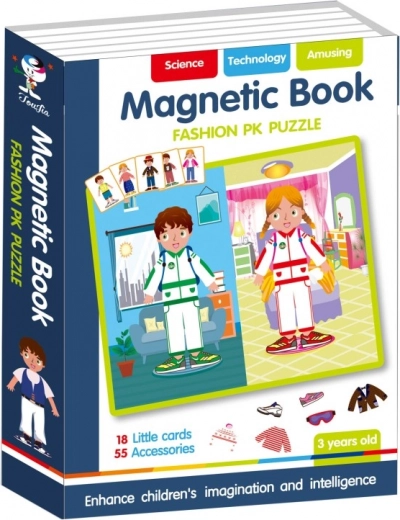 Kreativní magnetická kniha rozvíjí fantazii a jemnou motoriku. Děti si vyberou předlohu a poskládají scénu nebo vytvoří vlastní. Praktické knižní balení se snadno přenáší, takže je ideální na doma i na cesty. Balení obsahuje 18 karet s předlohami a 55 magnetických doplňků pro nekonečné kombinace módních outfitů.