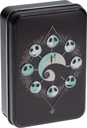 Černá kovová krabička s motivem Jacka Skellingtona a Sally je ideální pro skladování a udržuje vaše karty v bezpečí.