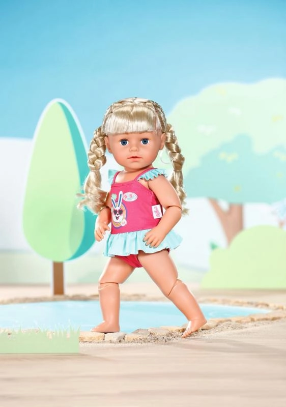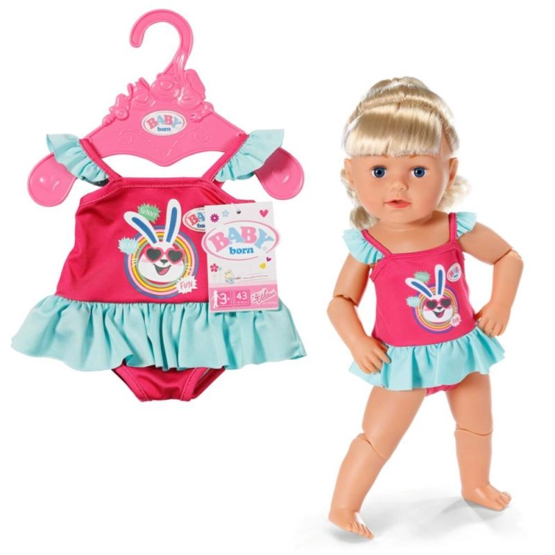 Oblékněte svou panenku BABY BORN 43 cm do stylových plavek a vyrazte k vodě. Kolekce nabízí dva krásné designy: růžové šatičkové plavky s volánkem a potiskem zajíčka, nebo květované jednodílné s roztomilými růžovými volánky. Každé balení obsahuje i růžové ramínko pro přehledné uložení do dětského šatníku.