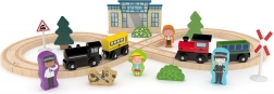 - 34 dílů pro bohaté herní možnosti – koleje, vláček, figurky zvířátek, domeček a stromy.
