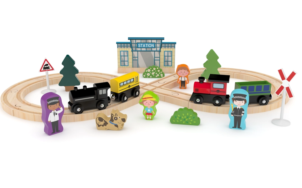 Dopřejte dětem svět tvořivého hraní s dřevěným hracím setem vlakového nádraží. Set je vyroben z ekologicky udržitelného dřeva bez chemikálií, je bezpečný a odolný pro každodenní hraní. Díky variabilním kolejím a doplňkům si děti snadno postaví vlastní železniční příběhy.