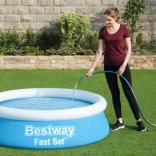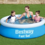 Nafukovací bazén Bestway Fast Set s průměrem 183 cm a výškou 51 cm je praktickým a ekonomickým řešením pro domácí použití. Vyroben je z odolného materiálu DuraPlus™, který zajišťuje trvanlivost, odolnost vůči UV záření a mechanickému poškození. Snadno ho postavíte na trávu nebo tvrdý, rovný povrch.