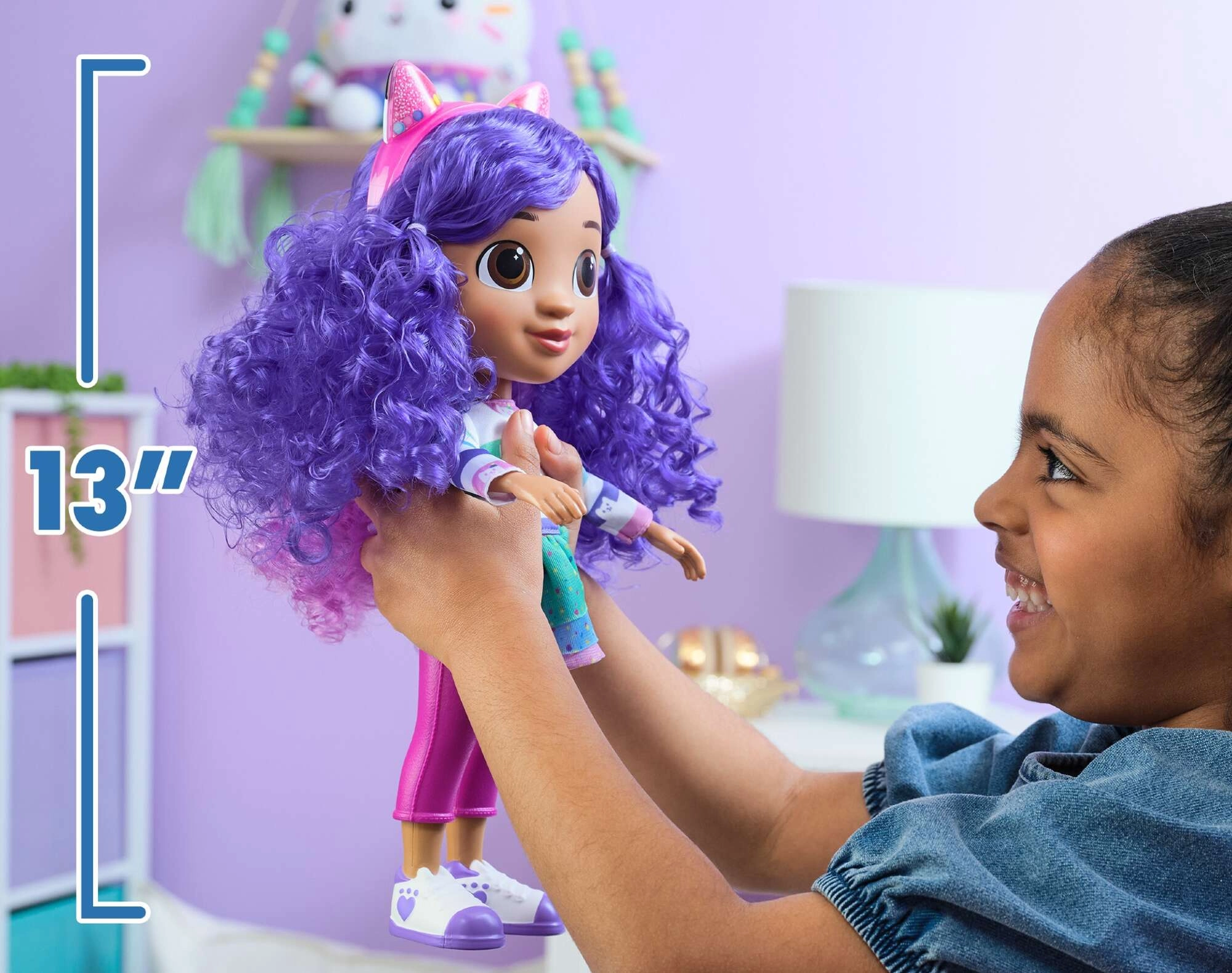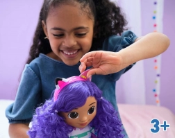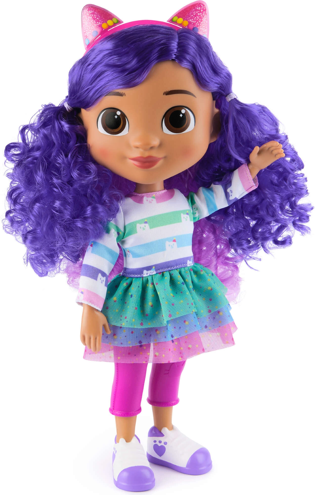 Panenka Gabby přináší dětem oblíbenou atmosféru z Netflix hitu přímo do pokojíčku. Krásné fialové kudrnaté vlasy, párty obleček a kočičí čelenka s otočnými oušky podněcují fantazii a stylování. Díky kloubovým končetinám ji snadno postavíte, posadíte i naaranžujete do zábavných póz.