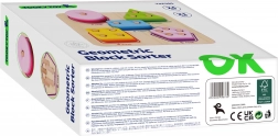 Dřevěný geometrický sorter TOOKY TOY je ideální vzdělávací pomůcka pro malé objevitele. Pět kolíků a pestré tvary (kruhy, trojúhelníky, čtverce, obdélníky a pětiúhelníky) učí děti rozlišovat tvary, barvy a množství. Každý dílek musí zapadnout na správný výstupek, díky čemuž se zábavnou formou posiluje logika, trpělivost i jemná motorika.