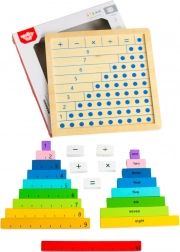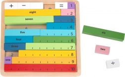 Tato edukativní sada kombinuje barevné dřevěné dílky s čísly a znaménky s praktickou dřevěnou deskou. Děti rychle pochopí vztahy mezi čísly a jednoduché aritmetické operace díky skládání příkladů a vizuální demonstraci.