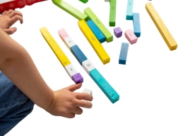 Děti manipulují s dílky, třídí barvy a vytvářejí rovnice – rozvíjejí jemnou motoriku i logické myšlení zábavnou formou.