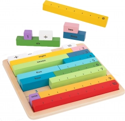 Hračku ocení začátečníci, kteří už znají číslice a potřebují procvičit počítání, sčítání a odčítání. Bezpečné, hladce opracované dřevo a netoxické barvy zaručují bezpečné hraní. Po hraní lze všechny dílky uklidit zpět do tabule, takže je vše vždy pohromadě.
