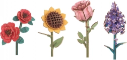 Čtyři unikátní modely květin s různými barvami a tvary zdůrazňují jemné řemeslné umění a estetický vzhled.