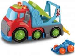 Přepravní auto Kiddy Go! přináší dětem spoustu akce a fantazie. Hlavní vůz o délce 19,5 cm převáží přiložené autíčko (6,5 cm), takže si mohou malí řidiči ihned hrát. Po stisku tlačítka na střeše se rozsvítí světla a ozvou zvuky, které umocní zážitek ze hry.