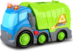 Objevte popelářské auto o délce 31 cm, které dětem nabídne spoustu akce a fantazie. Hračka kombinuje realistické světelné a zvukové efekty s jednoduchým ovládáním – efekty se spouštějí tlačítkem na střeše kabiny. Volnoběžná kolečka zajišťují hladký pohyb po podlaze a snadné řízení i pro nejmenší.
