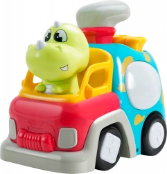 Objevte roztomilé autíčko s motivem dinosaura, které přináší spoustu interaktivní zábavy pro nejmenší. Po stisknutí tlačítek na zadní straně se aktivují světelné efekty a zvuky, které podporují smyslový rozvoj a rozvíjejí dětskou zvědavost. Díky volnoběžným kolečkům se autíčko snadno ovládá a hladce jezdí po různých površích.