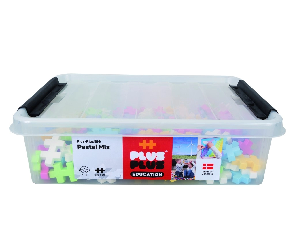 Velký úložný box Plus-Plus BIG přináší 200 barevných pastelových dílků, které podporují rozvoj jemné motoriky, představivosti a logického myšlení. Díky větší velikosti dílků jsou vhodné již od 1 roku a skvěle se drží i malým dětem.