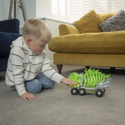 Blikající žluté oko a realistické zvuky řvoucího dinosaura vtáhnou děti do hry a podpoří jejich představivost.