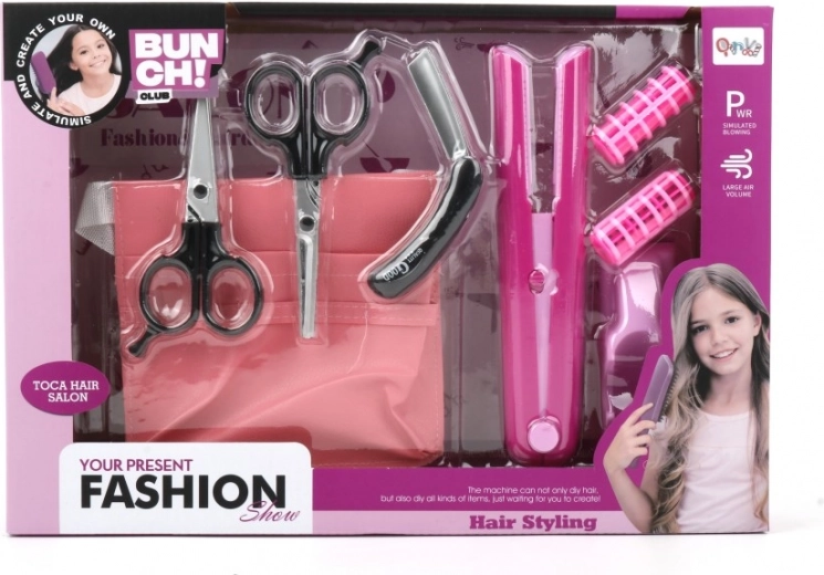 Tato dětská sada kadeřnických nástrojů je ideální pro všechny malé kadeřnice a stylistky, které chtějí prozkoumat svět vlasového designu. Díky dvěma nástavcům fénu umožňuje tato sada různé styly foukání a úpravy vlasů.