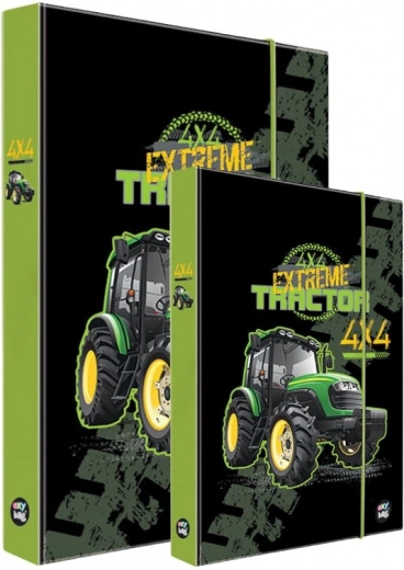 Praktická sada boxů na sešity ve formátech A4 a A5 s motivem traktoru ochrání vaše materiály před pomačkáním a nečistotami. Díky odolnému laminu a zavírání na gumičku jsou sešity, papíry i školní pomůcky vždy bezpečně uložené.