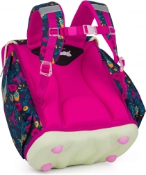 Školní batoh Premium Light Motýl kombinuje odlehčenou konstrukci s promyšlenou ergonomií pro pohodlné a zdravé nošení. Zádový panel o délce 33 cm a prodyšné polstrování zajišťují správné usazení batohu na zádech, zatímco široké, měkčené a tvarované popruhy rovnoměrně rozkládají zátěž.