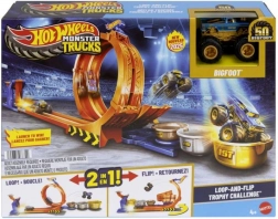 Připravte se na adrenalinové kaskadérské výkony s Hot Wheels Monster Trucks setem Bigfoot. Tento unikátní herní set zahrnuje dvě konfigurace, které poskytují různé herní výzvy: