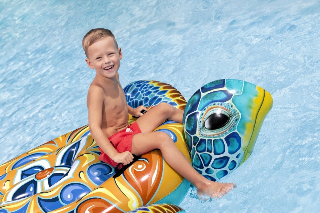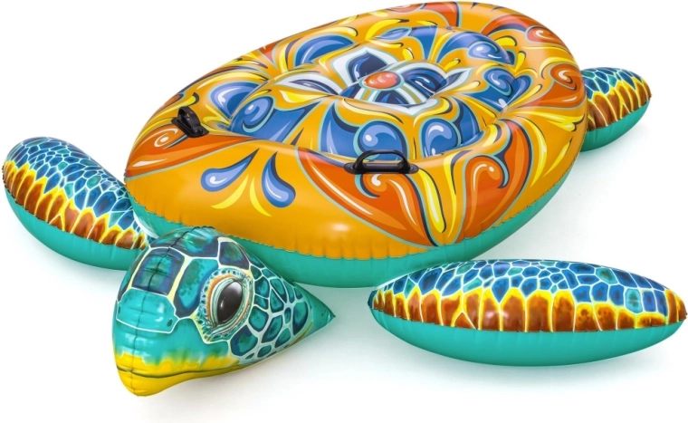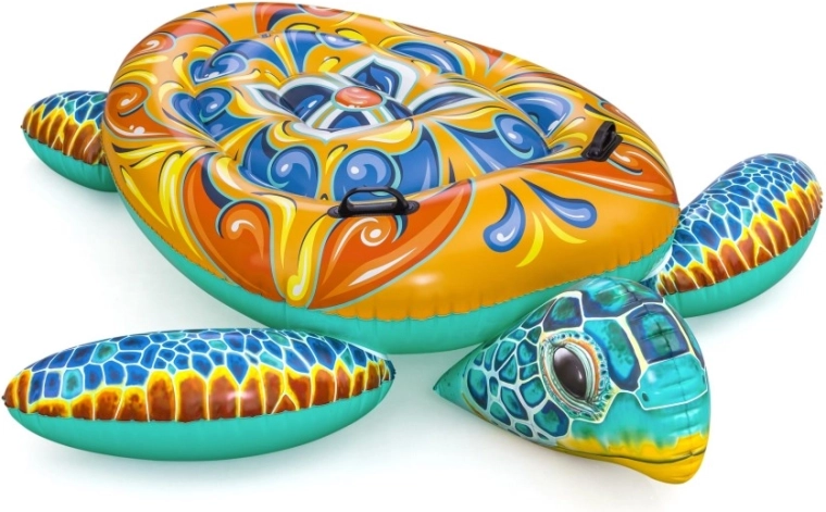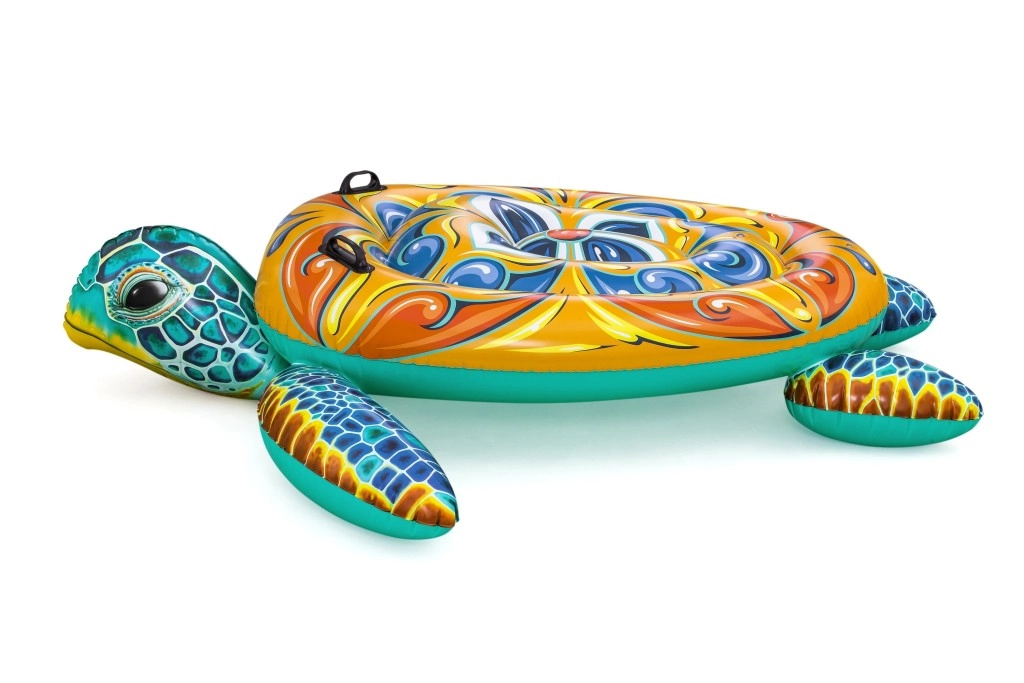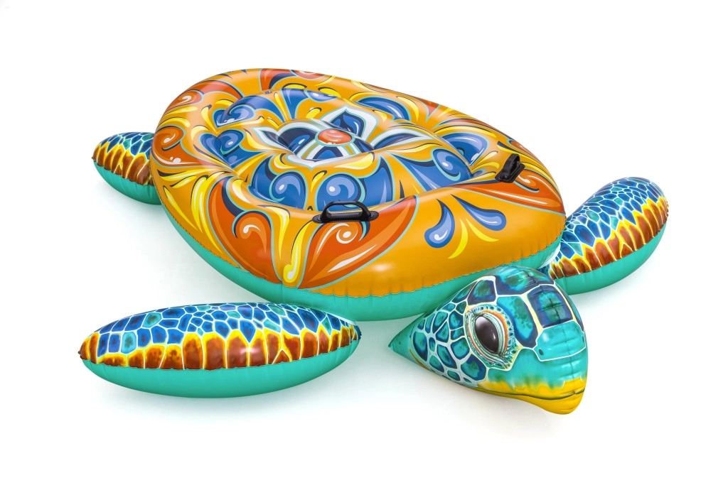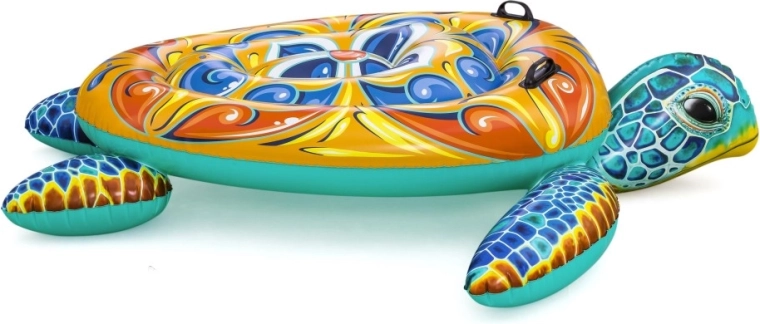 Nafukovací želva Bestway s výrazným potiskem Majolika je ideální volbou pro vodní radovánky. Díky velkým rozměrům 183 × 173 cm poskytuje komfortní prostor pro ležení i jízdu, zatímco dvě integrovaná držadla zajišťují jistý úchop a stabilitu při nasedání i během hry.