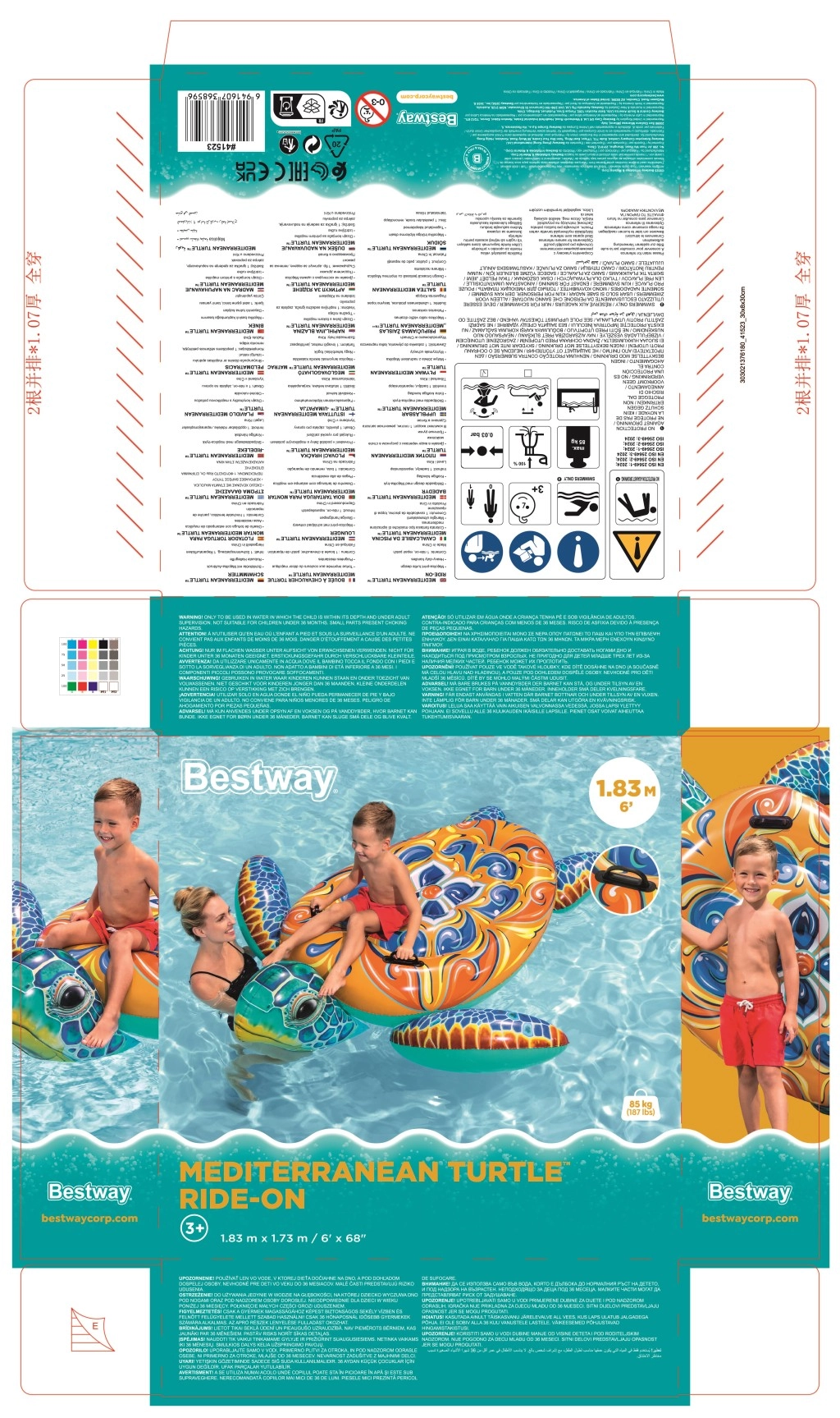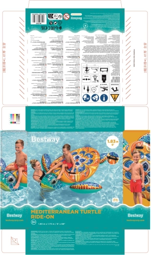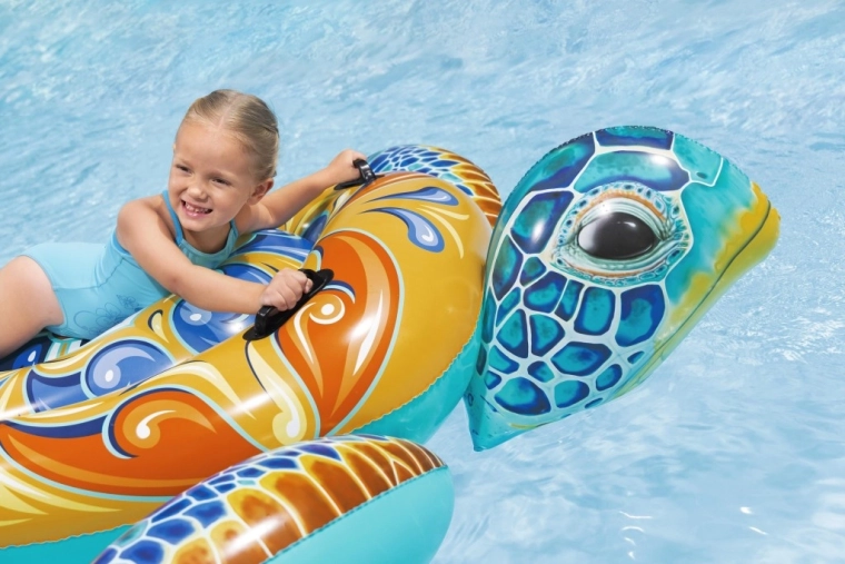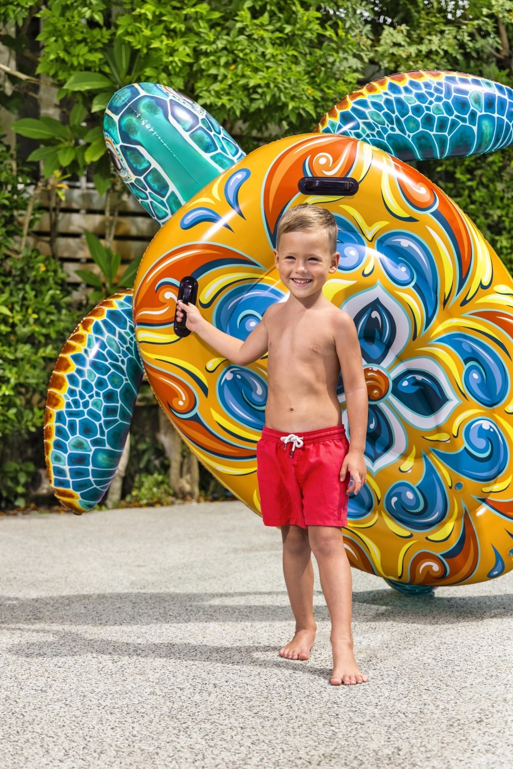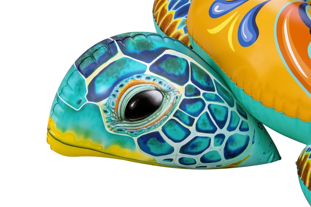 Nafukovací želva Bestway s výrazným potiskem Majolika je ideální volbou pro vodní radovánky. Díky velkým rozměrům 183 × 173 cm poskytuje komfortní prostor pro ležení i jízdu, zatímco dvě integrovaná držadla zajišťují jistý úchop a stabilitu při nasedání i během hry.