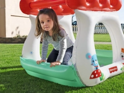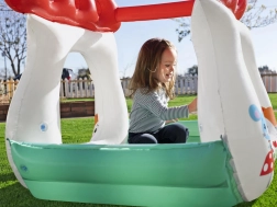 Nafukovací domeček Muchomůrka je vyroben z odolného PVC, které zajišťuje stabilitu a bezpečnost. Měkké nafukovací stěny chrání dítě před zraněním a široká základna zabraňuje převrácení domečku. Díky kompaktním rozměrům ho lze snadno umístit doma i venku, což vytváří ideální místo pro hraní.