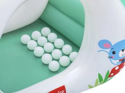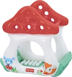 Domeček se pyšní radostnou barevností v odstínech zelené, bílé a červené. Střecha ve tvaru muchomůrky slouží nejen jako ochrana, ale i jako prostor pro třídění kuliček, což podporuje koordinaci ruky a oka a učí základní manuální dovednosti. Součástí balení je 15 lehkých kuliček, které dělají hru ještě zajímavější.