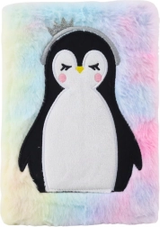 Barevná chlupatá obálka s výšivkou tučňáka s korunkou a sluchátky je měkká na dotek, chrání zápisník a zaručí, že vynikne kdekoliv.