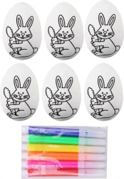 - Vše v balení – 6 vajíček + 6 fixů v pestrých barvách.