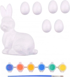 - 6 polystyrenových vajíček, 1 figurka zajíčka, 6 barev, 1 štětec