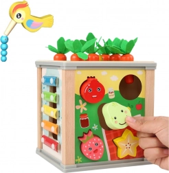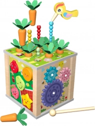 Objevte zábavnou a chytrou hračku pro děti od 3 let: dřevěnou vzdělávací kostku 6v1, která rozvíjí jemnou motoriku, logické myšlení i koordinaci ruka-oko. Nabízí šest aktivit v jednom – od vytahování „mrkviček“, přes třídění tvarů, ozvučné cymbálky/xylofon, ozubená kolečka až po výukový hodinový ciferník. Díky vnitřnímu prostoru pro ukládání je hračka praktická a učí děti pořádku. Vyrobeno z kvalitního dřeva, s důrazem na bezpečnost a trvanlivost.