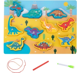 Edukativní dřevěná skládanka s motivem dinosauřů, která rozvíjí kreativitu dětí a jejich manuální dovednosti. Díky magnetickým prvkům je hra atraktivní a poskytuje další výzvy.