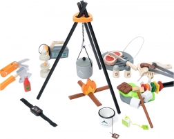 This se skvělou dřevěnou sadou pro kempování si děti užijí řadu dobrodružství doma i venku. Realistické příslušenství nabízí možnosti, jak si zahrát na kempování, od zapalování ohně až po přípravu jídla. Sada obsahuje batoh, lucernu, nůžky na grilování a další nástroje, které podpoří rozvoj manuálních a poznávacích dovedností.