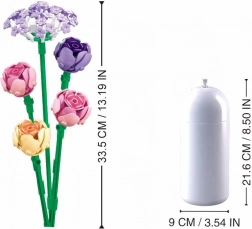 Stavebnice je kompatibilní s LEGO, COBI a Mega Bloks, takže ji snadno rozšíříte o další prvky ze své sbírky. Díky realistickým proporcím se hotová kytice skvěle vyjímá ve váze doma i v kanceláři.