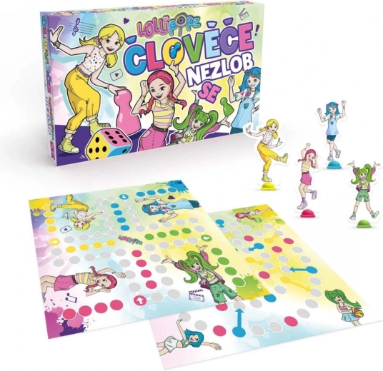 Oblíbená rodinná hra ČLOVĚČE, NEZLOB SE! v jedinečné edici s figurkami LOLLIPOPZ přináší spoustu zábavy pro malé i velké. Oboustranný herní plán nabízí klasickou variantu i hru s jednou figurkou. V balení najdete 16 figurek, hrací kostku a návod. Věk 3+.