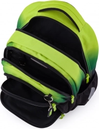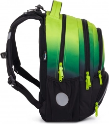 OXY NEXT Ombre je promyšlený školní batoh, který kombinuje pohodlí, bezpečnost a praktické členění. Díky ergonomickému zádovému panelu (42 cm) a polstrovaným, nastavitelným ramenním popruhům s hrudním popruhem se pohodlně nosí i při plném zatížení. Reflexní prvky po obvodu batohu zvyšují viditelnost dětí za šera i za zhoršeného počasí.