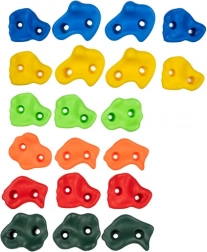Kameny jsou odolné proti UV záření, takže mohou být použity jak v interiéru, tak exteriéru bez rizika vyblednutí. Různorodé tvary a barvy pomáhají rozvíjet koordinaci, sílu a hbitost dětí. Sada je vhodná pro začátečníky i zkušenější malé horolezce.