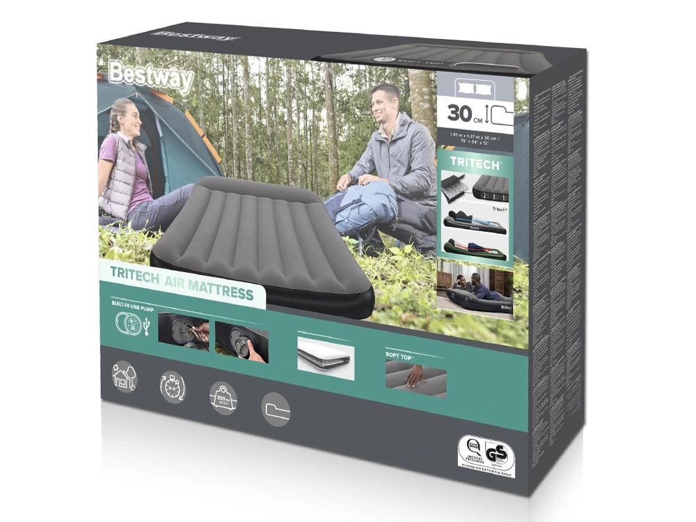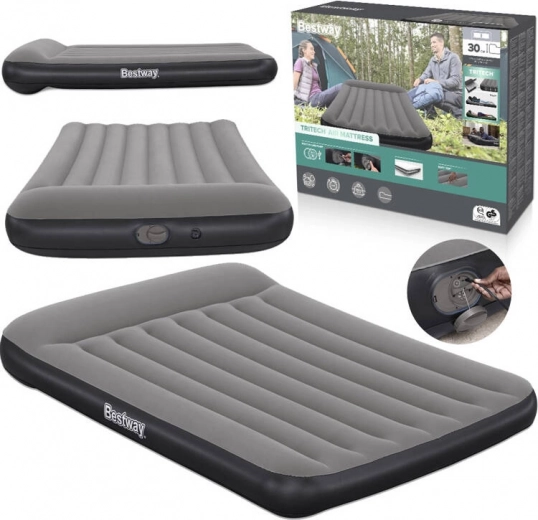 Nafukovací postel Bestway TRITECH je spolehlivý parťák pro přespání doma i na cestách. Vnitřní konstrukce TRITECH je vyztužena pro dlouhodobou tvarovou stálost a je odolnější proti roztažení než běžné PVC. Příjemný semišový povrch zvyšuje komfort a brání klouzání povlečení.