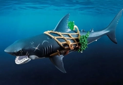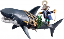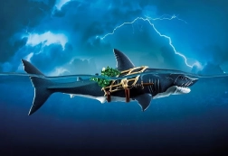Obří žralok s pirátem od PLAYMOBIL přináší dětem napínavé příběhy z hlubin oceánu. Stačí zatáhnout za páku a gigantická tlama se otevře, připravena „polapit“ kořist; po uvolnění se automaticky zavře. Pirátská figurka se drží sítě, je vyzbrojena šavlí a dýkami a je připravena na každou námořní potyčku.