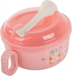 Tato dětská miska s víčkem a lžičkou usnadní krmení miminek i batolat. Pevně přiléhající víko brání protékání a udrží jídlo čerstvé, zatímco dvě ergonomické rukojeti zajišťují jistý úchop pro malé ručky i rodiče. Kvalitní plast je odolný pro každodenní použití a snadno se udržuje – můžete jej mýt v myčce a jídlo skladovat v mrazáku.