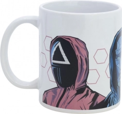 Stylový keramický hrnek s motivem Squid Game o objemu 325 ml potěší fanoušky kultovního seriálu. Dodáván v dárkové krabičce, ideální jako dárek i pro každodenní používání.