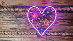 Vytvořte si doma jedinečnou atmosféru s dekorativním LED neonem ve tvaru srdce. Transparentní panel s barevnými květinovými motivy a výrazná růžovo‑fialová linka dodají prostoru moderní a současně hravou energii. Díky USB napájení odpadá starost o výměnu baterií a úsporné LED šetří elektřinu.