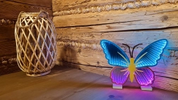Stylová dekorativní LED NEON lampička Motýl rozzáří dětský pokoj, ložnici i obývák jemnou, barevnou září. Je navržena pro vnitřní použití a kombinuje moderní vzhled s praktickým USB napájením, takže odpadá starost o výměnu baterií.